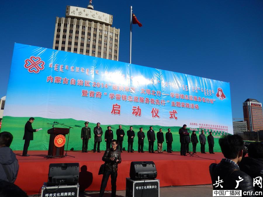 央廣網(wǎng)呼和浩特3月4日消息(記者寶音)今天(4日)上午,內(nèi)蒙古自治區(qū)2014“德潤草原·文明之行——學(xué)雷鋒志愿服務(wù)在行動”暨首府“學(xué)雷鋒志愿服務(wù)我先行”主題實踐活動啟動儀式在呼和浩特市新華廣場隆重舉行。同時,在全區(qū)各地設(shè)立分會場,同時舉辦啟動儀式。