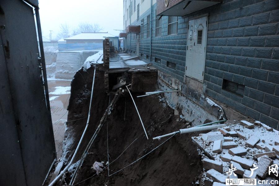 救援人員到場(chǎng)后發(fā)現(xiàn),距離該居民樓不到3米遠(yuǎn)的位置有一約7米深的地基坑施工工地,由于工地施工時(shí)不慎使該居民樓的自來(lái)水管道爆裂,不斷流出的自來(lái)水造成樓前土地松軟塌陷,約有20平米的土地塌陷至于工地地基內(nèi),導(dǎo)致家屬樓一單元內(nèi)的住戶(hù)被困于內(nèi)。