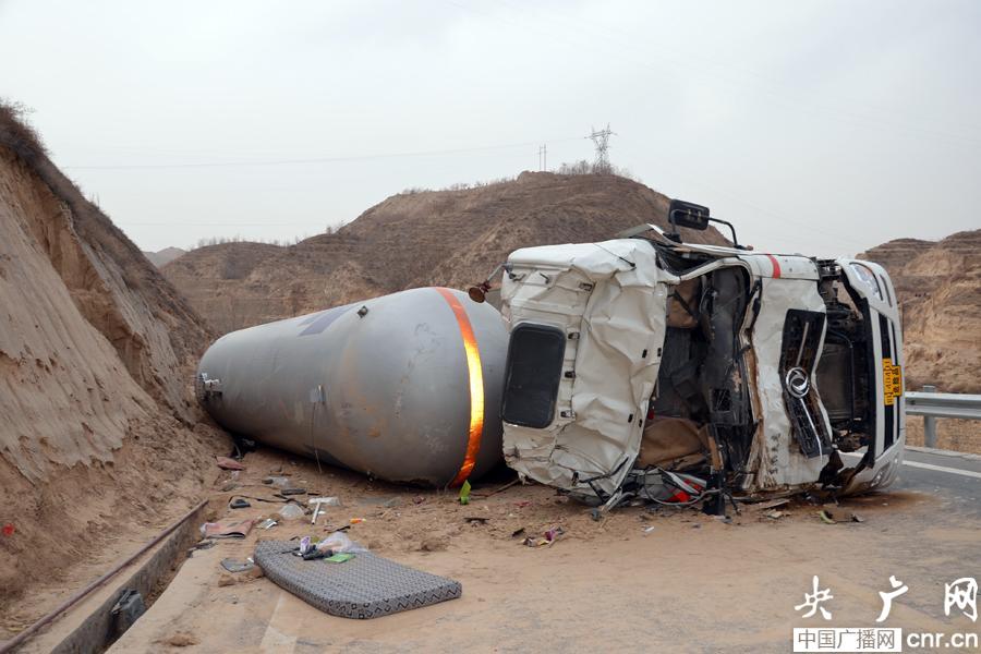 央廣網(wǎng)3月12日消息(記者焦健 通訊員劉永東)昨天(11日)下午,一輛由新疆開往四川方向滿載24噸液化氣的槽車,在甘肅省臨夏州折達(dá)公路發(fā)生側(cè)翻。