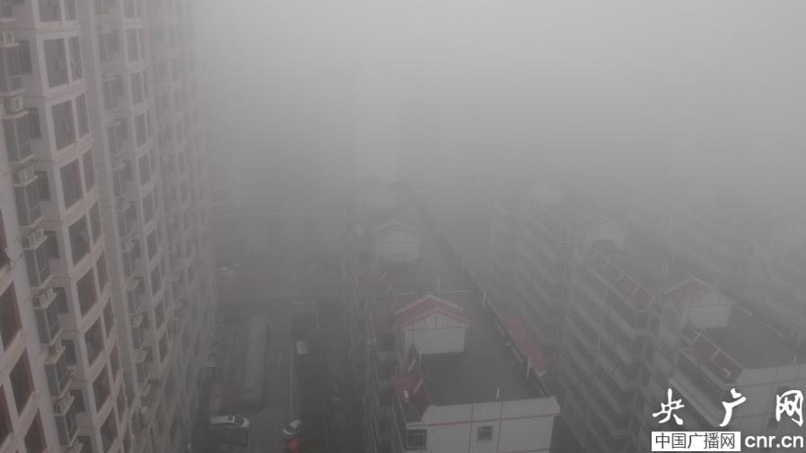 南寧市金湖南路的某小區(qū) 在大霧籠罩下已看不到附近高樓(央廣網(wǎng)記者 鄧君洋 攝)