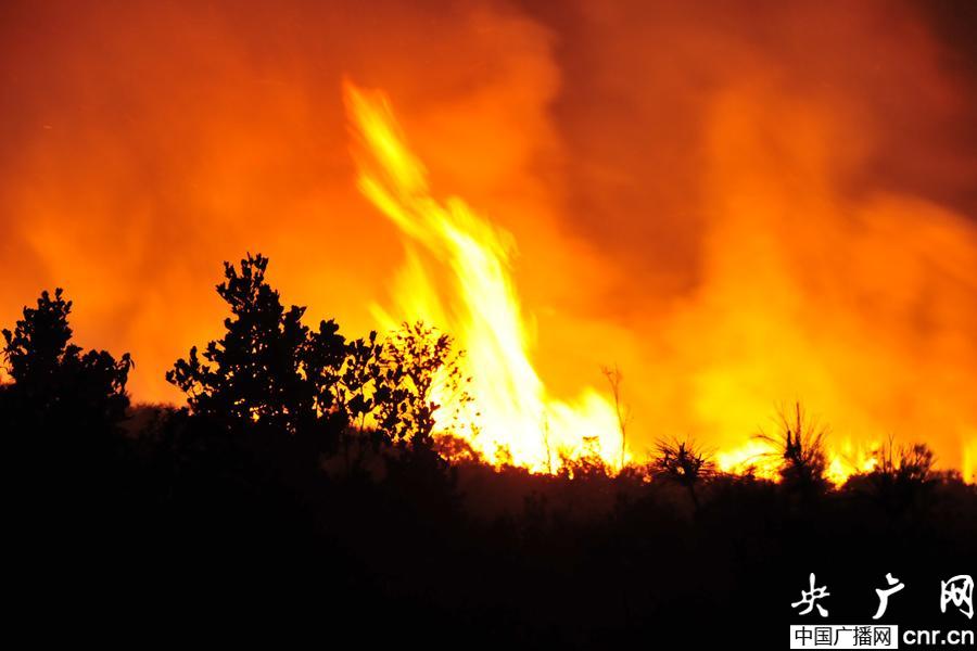 央廣網(wǎng)昆明3月13日消息(記者李健飛 通訊員龔龑)2014年3月12日凌晨1時30分左右,云南祿豐縣勤豐鎮(zhèn)馬關(guān)營村委會王家尖山發(fā)生森林火災。昆明、楚雄兩地近2000余人參與撲救,國家森林防火指揮部緊急調(diào)派1架米-26直升機在火場實施吊桶滅火作業(yè)。圖為武警昆明森林支隊在現(xiàn)場全力撲救。
