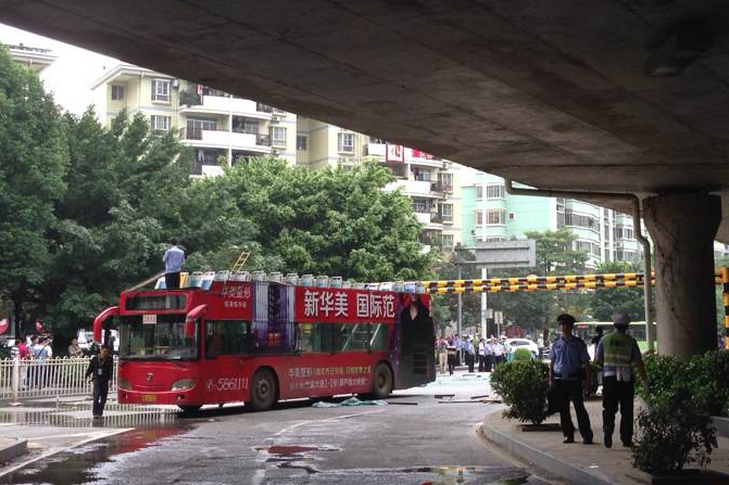 南寧雙層公交撞限高架致28傷 建設(shè)方未通知公交公司