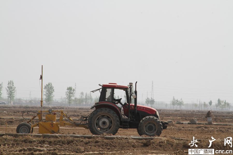 激光平整儀整理土地(央廣網(wǎng)記者 廉軍 攝)