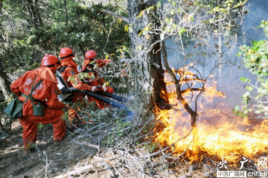 災(zāi)情發(fā)生后,香格里拉縣和建塘鎮(zhèn)啟動(dòng)了應(yīng)急預(yù)案。由于火災(zāi)現(xiàn)場(chǎng)林相為高山松、高山櫟混交林,且山高物燥,風(fēng)勢(shì)強(qiáng)大,撲救工作困難較大。武警迪慶州森林大隊(duì)根據(jù)迪慶州森林防火指揮命令,迅速出動(dòng)官兵第一時(shí)間趕赴火場(chǎng)一線撲救。部隊(duì)到達(dá)火災(zāi)現(xiàn)場(chǎng)后,經(jīng)現(xiàn)地勘察,火場(chǎng)海拔3500米,火勢(shì)為夾山火,坡度約60度。全體參戰(zhàn)官兵克服高寒缺氧、陡坡密林艱難行軍等困難,采取“一點(diǎn)突破”、“兩翼推進(jìn)”等手段展開撲救。