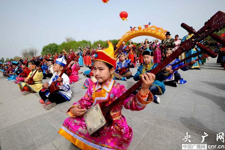 百名學生彈奏托布秀爾(央廣網(wǎng)記者 張雷 攝)