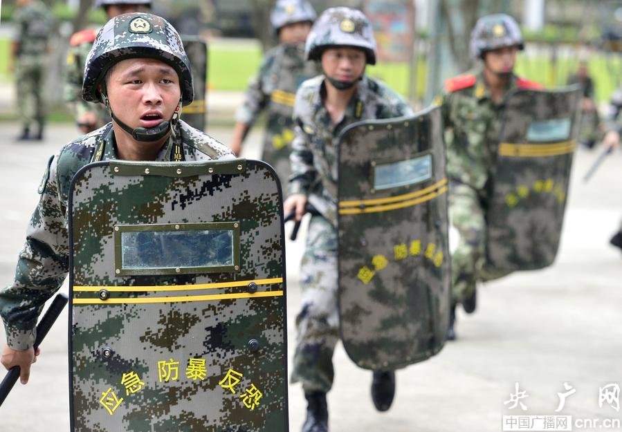 廣東深圳:全國首支街道反恐民兵分隊舉行反恐演練(央廣網(wǎng)發(fā) 廖鍵 攝)