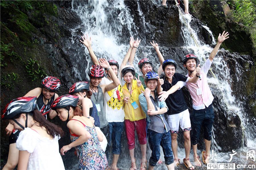 在呀諾達(dá)景區(qū),游客紛至沓來(lái),享受景區(qū)旅游惠民活動(dòng),暢游熱帶雨林,樂(lè)享“天然氧吧”!坝炅指呖栈鳌、“踏瀑戲水”,“森林劇場(chǎng)”等眾多項(xiàng)目擠滿了前來(lái)體驗(yàn)的海南籍居民。