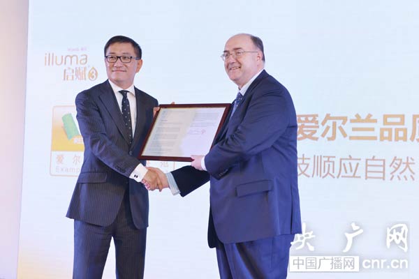 央廣網(wǎng)北京5月29日消息(記者 于聞)惠氏營(yíng)養(yǎng)品旗下“啟賦”嬰兒配方奶粉,日前正式獲得由愛爾蘭農(nóng)業(yè)、食品和海洋部部長(zhǎng)Simon Coveney先生授信的“愛爾蘭品質(zhì)典范”認(rèn)可,成為全球第一家由愛爾蘭政府授此殊榮的奶粉品牌。愛爾蘭駐中國(guó)大使John Paul Kavanagh先生出席授信儀式,將載有此項(xiàng)認(rèn)可的愛爾蘭農(nóng)業(yè)部長(zhǎng)簽名信函交付于惠氏營(yíng)養(yǎng)品大中華區(qū)總裁瞿峰先生,并向惠氏營(yíng)養(yǎng)品致以熱烈祝賀。