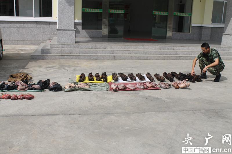 圖為邊防官兵正在清理查獲的野生動(dòng)物(央廣網(wǎng)記者 張壘 攝)