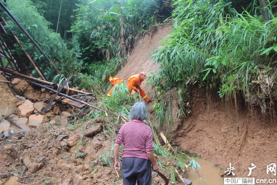 由于山體滑坡導(dǎo)致交通中斷,藍(lán)山縣消防大隊(duì)官兵沿著山路步行進(jìn)入上源村。在現(xiàn)場(chǎng),只見洪水挾帶著大量泥沙和石塊沿著山體傾瀉而下,沖進(jìn)村里低洼地區(qū)的房屋、道路和農(nóng)田,不少房屋進(jìn)水嚴(yán)重,最深的足有六七十公分,屋內(nèi)家具、電器、生活用品泡水,有的已經(jīng)轉(zhuǎn)移到屋外。受災(zāi)最嚴(yán)重的村民有兩間泥土房被崩塌而下的山體壓垮,現(xiàn)場(chǎng)一片狼藉,堆積滿地的樹木、雜草、石頭等堵住了排水溝,如不及時(shí)清除滑落山體從山上沖下的洪水將直接威脅到其余房屋。消防官兵們拿來鋤頭、鏟子,鉤刀等工具奮力清除障礙,疏通溝渠,并對(duì)被沖毀的溝渠進(jìn)行加固引流。下午4點(diǎn)半左右,盡管大家頂著暴雨如注,渾身濕透,褲腿甩滿泥土,內(nèi)心卻十分欣慰,洪水得到了有效的疏通,基本保障了村民房屋的安全。