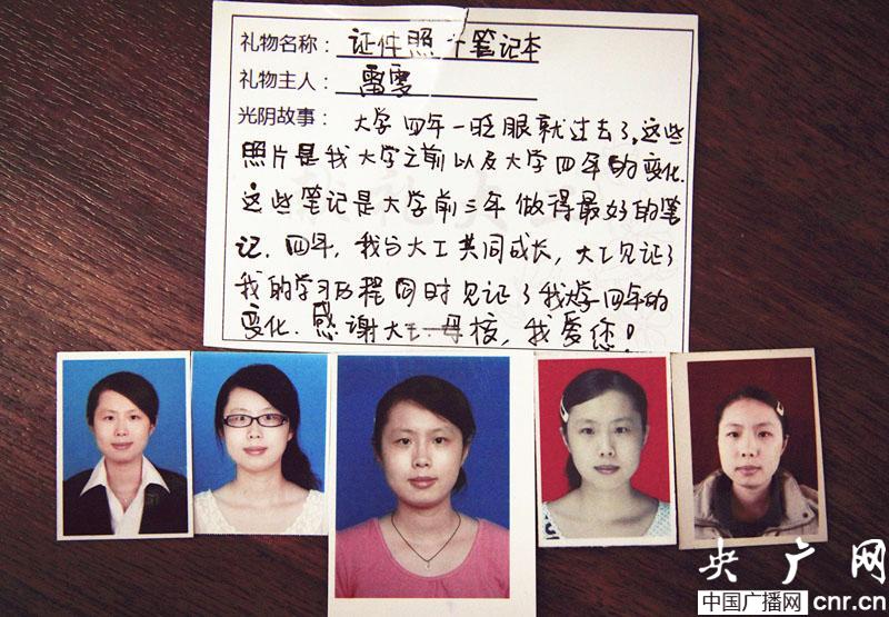 2009年入學(xué)(英語強(qiáng)化班五年制)坐飛機(jī)來大工報到時的登機(jī)牌;大一剛?cè)雽W(xué)時聽李開復(fù)博士講座時李開復(fù)的親筆簽名;大學(xué)四年累計的志愿活動證書;四年來的寢室衛(wèi)生檢查表……禮物雖小,卻飽含濃濃深情。大連理工大學(xué)學(xué)生工作處副處長顧豐說:“畢業(yè)季,母?倳徒o畢業(yè)生禮物,祝福畢業(yè)生前程似錦。而今年,除此之外,學(xué)校通過獻(xiàn)禮大工的形式,讓畢業(yè)生們也有機(jī)會和渠道送出自己獻(xiàn)給母校的禮物,抒發(fā)畢業(yè)生的愛校情懷,從而培養(yǎng)畢業(yè)生感恩意識,同時用畢業(yè)禮物中蘊含的故事,感染在校生,希望他們珍惜在校時的美好時光。”
