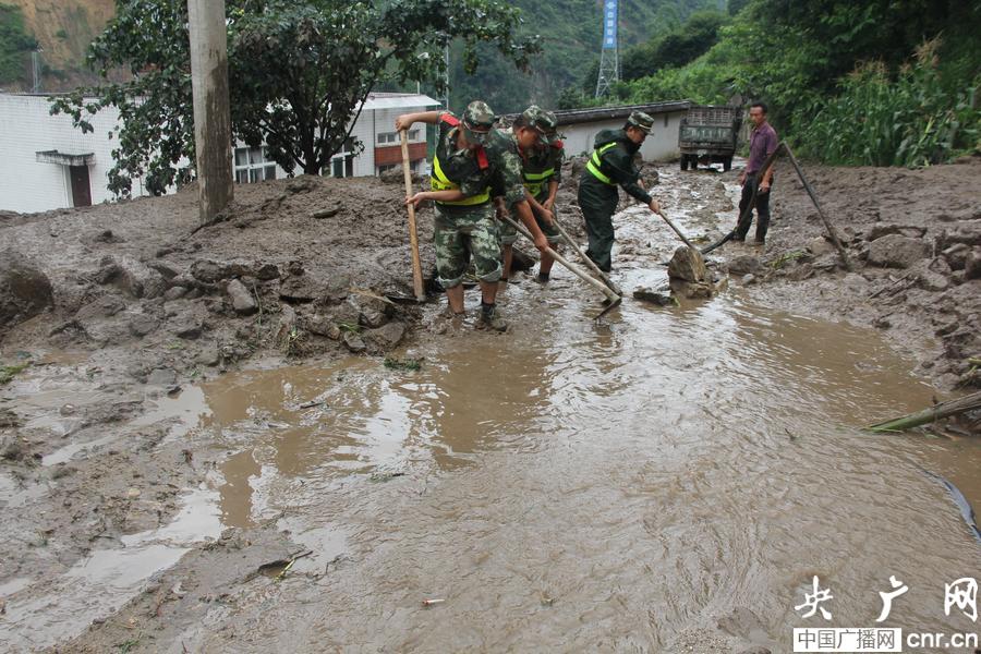 官兵在清理淤泥(央廣網(wǎng)記者 李健飛 攝)