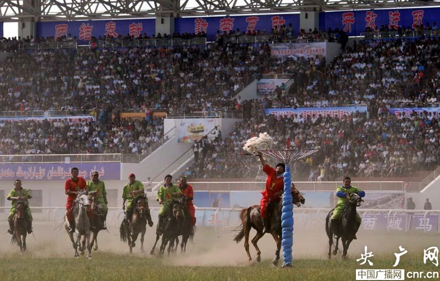 新疆舉辦國際叼羊邀請賽 三國選手競技(鄒懿攝)
