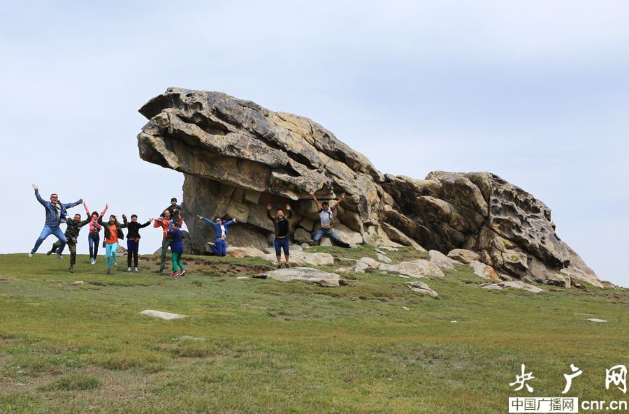 央廣網(wǎng)維吾爾7月30日消息(記者吳卓勝 通訊員董基春)29日,一群游客在新疆焉耆回族自治縣霍拉山區(qū)一座酷似臥獸的巨型怪石旁游玩。