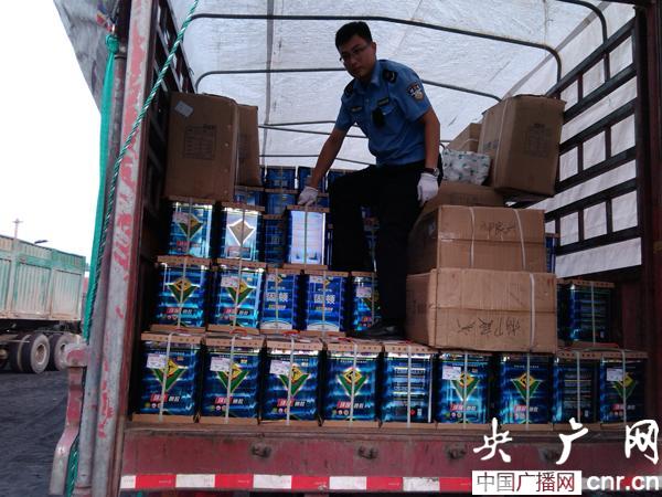 執(zhí)法人員對(duì)車輛進(jìn)行檢查(央廣網(wǎng)記者 賈立梁 攝)