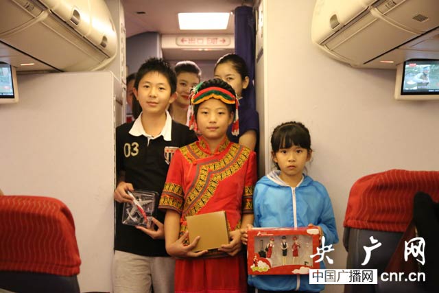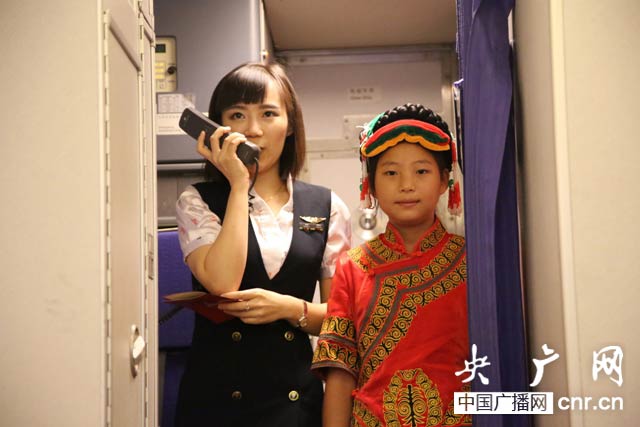 “多年來,他們一直有一個夢想,去看看山區(qū)外的世界。此次,在鼎和保險、深圳市團委、深圳航空的幫助下,他們第一次走出山區(qū),第一次飛上藍天,第一次眺望大海。我代表機長、乘務組,對兩位客人及一路相隨的乘客再次表示最誠摯的歡迎!碑斏詈絑H9996航班乘務長的廣播響起后,吳曼秋小朋友用一曲彝族歌曲《祝酒歌》贏得了全客艙旅客的熱烈掌聲,同行的兩位小旅客也向她送去了祝福的擁抱。
