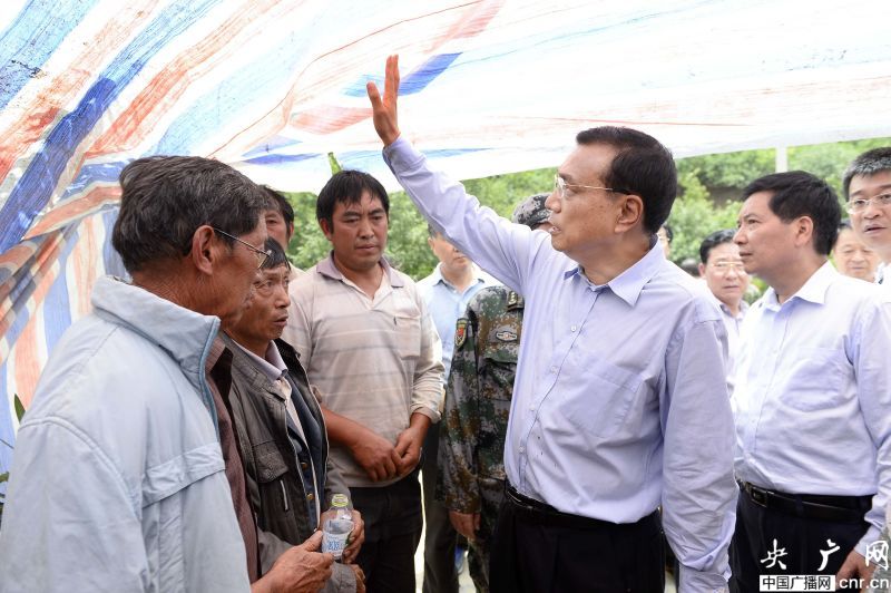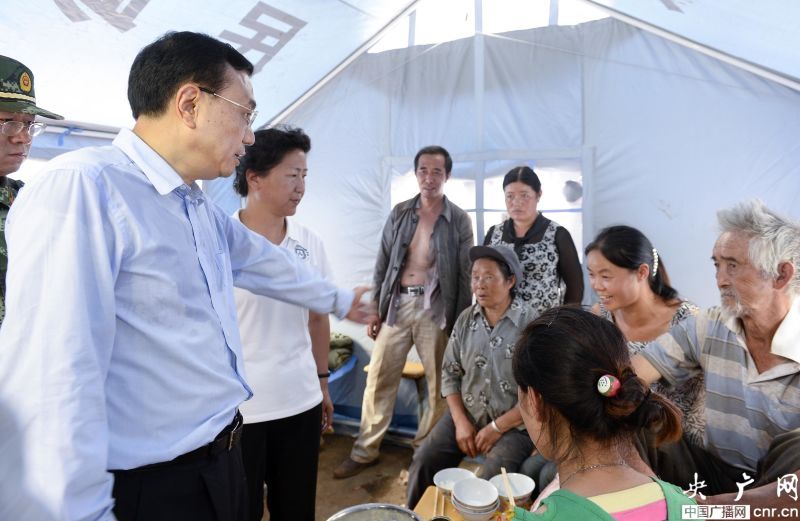 4日下午,李克強來到云南魯?shù)檎鹫鹬旋堫^山鎮(zhèn)災民臨時安置點,看望受災群眾。