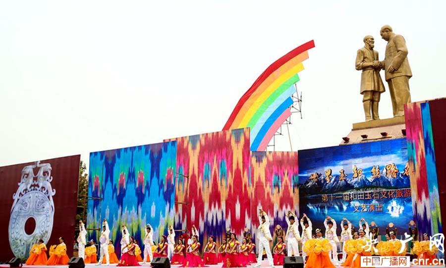 第十一屆和田玉石文化旅游節(jié)在和田市團(tuán)結(jié)廣場(chǎng)開(kāi)幕(央廣網(wǎng)記者 張雷 攝)