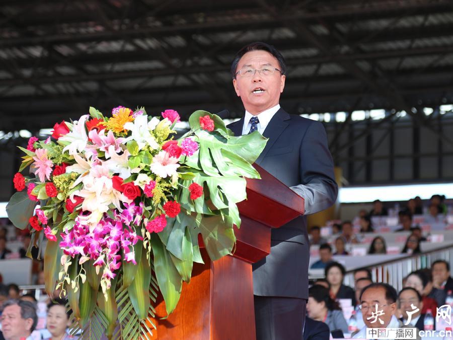 中央祝賀團(tuán)團(tuán)長(zhǎng)、國家民委黨組副書記、副主任李昭致辭(央廣網(wǎng)記者 張雷 攝)