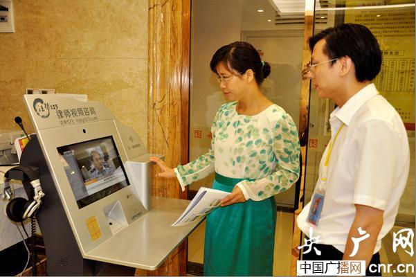 市民正在服務(wù)終端機上進行咨詢操作(央廣網(wǎng)記者 姜文婧 攝)