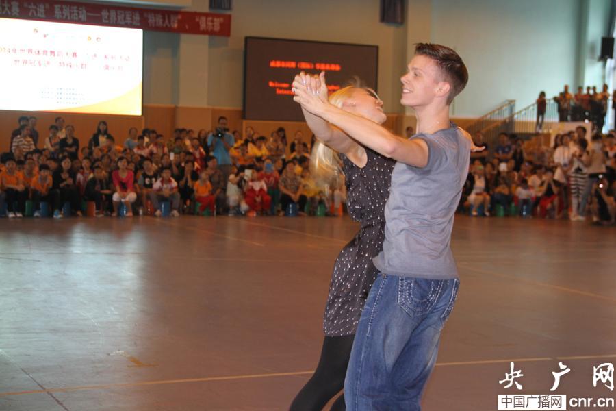 世界體育舞蹈頂尖選手表演舞蹈(央廣網(wǎng)記者 賈宜超 攝)