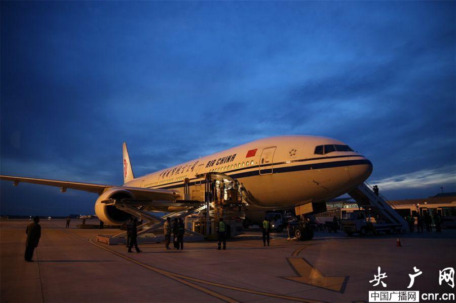 央廣網銀川10月12日消息 (記者許新霞 通訊員劉玉飛 劉琦鑫)10月11日18時30分,隨著沙特阿拉伯吉達至銀川CA9560次航班的緩緩降落,寧夏首批297名參加2014年度朝覲的寧夏銀川籍穆斯林群眾乘包機平安回國,抵達銀川河東國際機場。