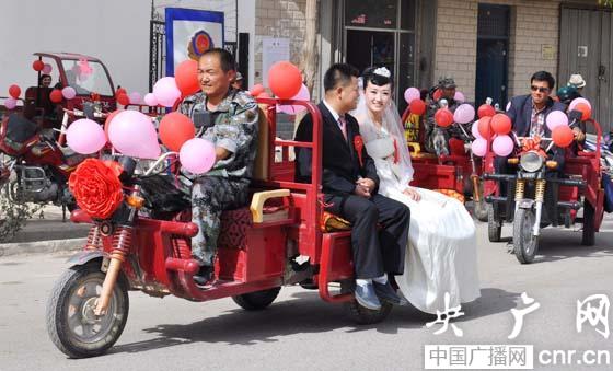 新疆和靜11對(duì)4個(gè)民族的新人乘三輪車辦特色婚禮