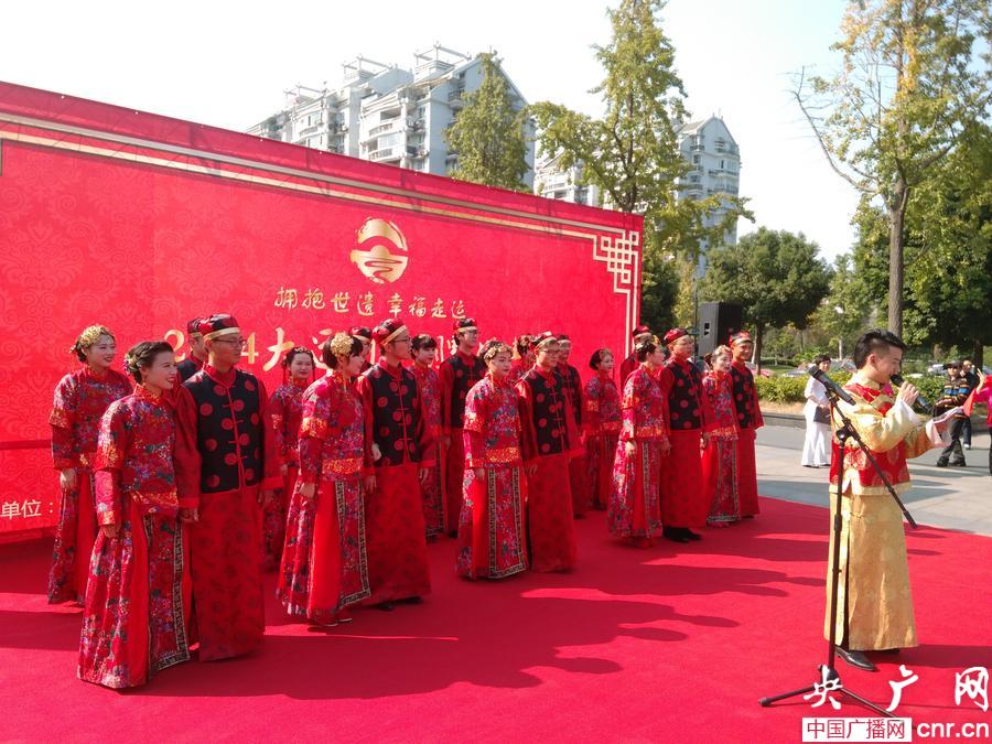 央廣網(wǎng)杭州10月25日消息(記者張國亮)今天下午,10對新人在杭州拱墅區(qū)在大運河旁邊的信義坊廣場和富義倉等遺址點舉行了“湖墅婚典”傳統(tǒng)式集體婚禮,以此來慶祝大運河今年申遺成功。大運河湖墅婚典承載著復活運河婚俗文化、促進產(chǎn)業(yè)發(fā)展,帶動旅游觀光業(yè)發(fā)展的重任。此次婚典采用中式婚禮,整個流程包括橋西待嫁、漕坊接親、信義盟誓、富義娶親、運河走運、香積祈禱、大兜喜宴等,每個流程都融入了大運河的元素。