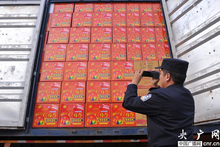 北京破獲今冬以來(lái)首起非法運(yùn)輸煙花爆竹案件 收繳煙花爆竹1800箱(央廣網(wǎng)記者 李文蕊 攝)