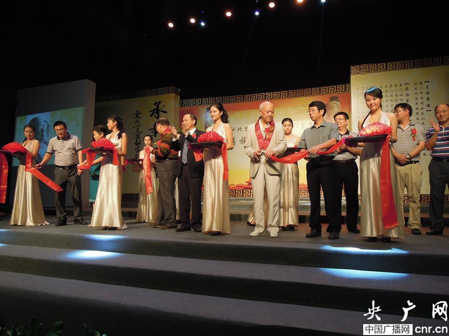 “愛心覺羅·承載墨藝”北京行宮書畫院廈門書畫展開幕剪彩(央廣網(wǎng)發(fā) 呂貝娜 攝)