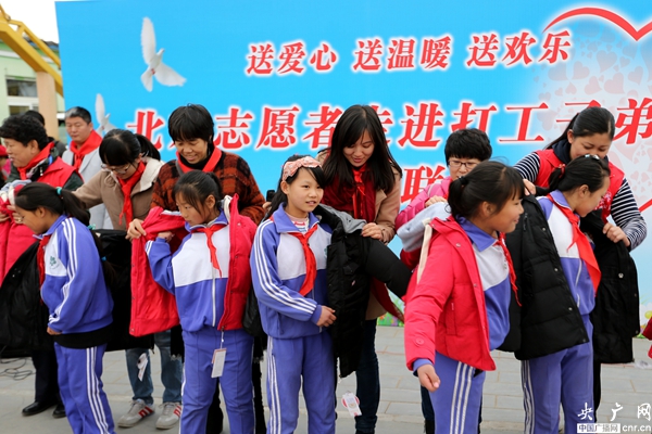 北京志愿者走進(jìn)打工子弟小學(xué)公益聯(lián)歡會(huì)舉行(央廣網(wǎng)記者 李文蕊 攝)