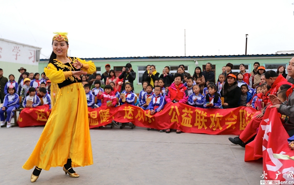 來(lái)自駐京的200多名政府機(jī)關(guān)、企事業(yè)單位、社會(huì)團(tuán)體、新聞媒體、大專(zhuān)院校、醫(yī)院和部隊(duì)等社會(huì)各界愛(ài)心人士及志愿者,載歌載舞為打工子弟小學(xué)的學(xué)生獻(xiàn)上了一場(chǎng)精彩的文藝演出,并給孩子們送去了愛(ài)心棉衣、愛(ài)心書(shū)包、電腦和文體用品等物品。