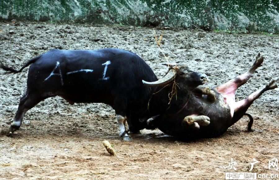 當天,云南“瀘西巨無霸”與貴州的12號之間進行冠亞軍決賽,云南“瀘西巨無霸”發(fā)起“閃電戰(zhàn)”,把12號斗牛碰翻在地。最終來貴州12號斗牛獲得了第二名,獲得獎金6萬元;貴州的8號獲得第三名,獲得了獎金1.5萬元;貴州的18號則獲得第四名,獎金0.6萬元。(姜澤鵬 李應光攝)