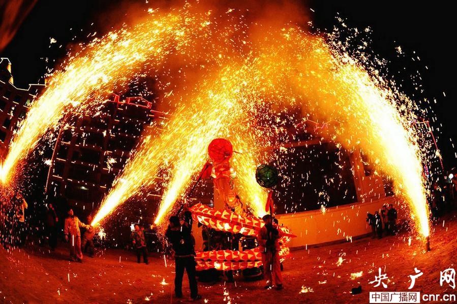 據(jù)悉,臺江“苗族舞龍噓花”歷史源遠(yuǎn)流長,從唐朝開始,外來文化與當(dāng)?shù)孛缱逦幕嘟Y(jié)合的產(chǎn)物。每年正月初七到了十五,臺江縣100多個苗寨農(nóng)民開始扎龍做花歡度春節(jié)。舞龍噓花男女老幼都可舞、可噓、可觀,著實(shí)地體現(xiàn)了苗疆兒女龍騰虎躍的勇敢和智慧,每年都會吸引來自海內(nèi)外上萬游客前來觀賞。圖為臺江苗族農(nóng)民在玩!懊缱逦椠垏u花”。