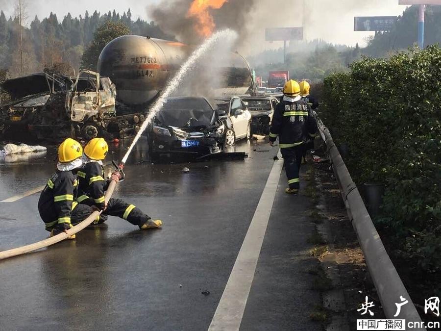 央廣網(wǎng)成都12月19日消息(記者劉濤)今天(19日)上午9時許,四川成南高速南充至成都方向蒼山段,一液化石油氣罐車追尾發(fā)生爆炸。事故已經(jīng)造成5輛轎車被毀,3人死亡,受傷人數(shù)不明。