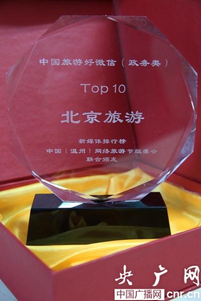 北京旅游官方微信獲“中國旅游好微信”TOP10獎項 北京市旅游委供圖(央廣網(wǎng)記者 李文蕊 攝)