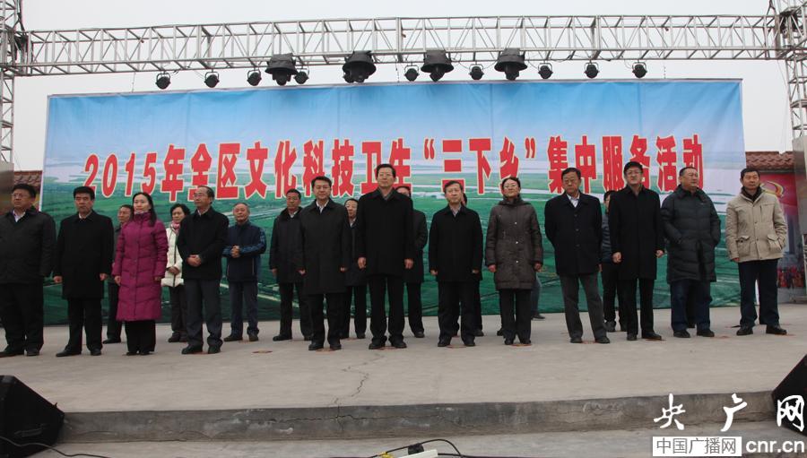 央廣網(wǎng)銀川2月3日消息 (記者許新霞、胡鈺)今天上午,2015年寧夏文化科技衛(wèi)生“三下鄉(xiāng)”集中服務(wù)活動在寧夏回族自治區(qū)石嘴山市平羅縣黃渠橋鎮(zhèn)啟動。寧夏回族自治區(qū)黨委常委、宣傳部長蔡國英及自治區(qū)人大、政府、政協(xié)、各廳局有關(guān)負責(zé)人參加了該活動。