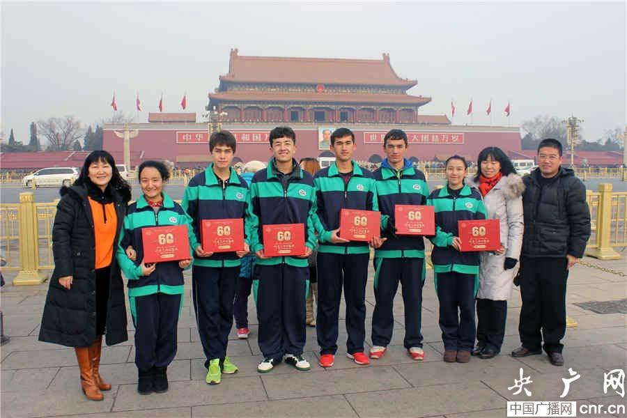 北京師大良鄉(xiāng)中學新疆各族內(nèi)高班學生在天安門參與“葉爾羌河對您說——新·春·棗送!盎顒印保ㄑ霃V網(wǎng)記者 張雷 攝)