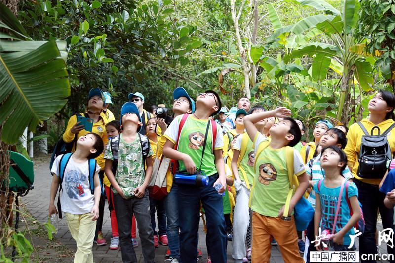 在游覽雨林谷的路上,孩子們對雨林里千奇百怪、種類繁多的珍奇植被十分感興趣,看到平時難得一見的熱帶雨林奇觀總會不自覺地發(fā)出驚呼。在帶隊老師和景區(qū)工作人員的引導(dǎo)和講解中,孩子們對雨林中的許多物種都如數(shù)家珍,留下深刻印象,其帶隊老師笑著說:“這種在戶外邊玩邊科普的方式比在課堂上學(xué)得快多了!”