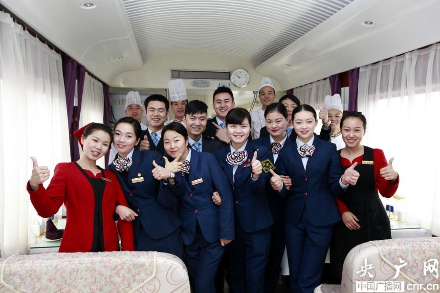 1月30日列車始發(fā)前,成都客運(yùn)段Z50次九組列車工作人員以良好的精神面貌迎接2015年春運(yùn)的到來。(央廣網(wǎng)發(fā) 胡志強(qiáng)攝)