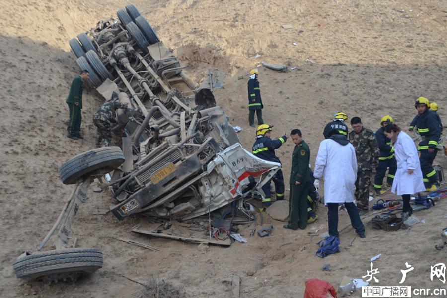 央廣網(wǎng)銀川2月10日消息(記者廉軍 通訊員永剛 劉瑋)今晨8時40分左右,在寧夏同心縣興隆鄉(xiāng),一輛正在海同公路上行駛的的20噸滿載汽油的罐車墜落30多米的深溝中,部分汽油泄漏,所幸油罐未發(fā)生燃燒爆炸,車上2人被困受傷。當(dāng)?shù)叵、交警、醫(yī)療等及時趕到現(xiàn)場處置,目前傷者已被救出送往醫(yī)院救治,罐車的善后正在進(jìn)行中。