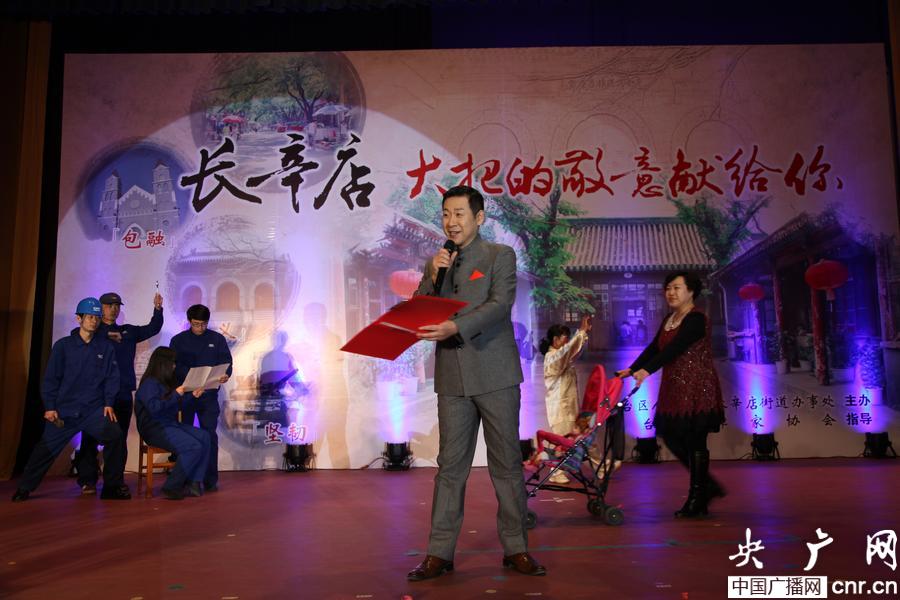 瞿弦和、詹澤等著名朗誦藝術(shù)家及長(zhǎng)辛店原創(chuàng)文學(xué)作品朗誦比賽獲獎(jiǎng)選手上臺(tái)表演(央廣網(wǎng)記者 李文蕊 攝)