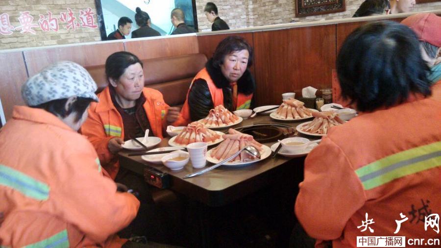 2月11日,山西朔州市某火鍋店請(qǐng)40名環(huán)衛(wèi)工吃年夜飯。崔小林 攝