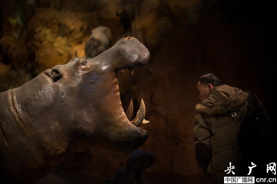 央廣網(wǎng)濟(jì)南2月23日消息 (記者柴安東)春節(jié)期間,一位市民正在山東省博物館觀看河馬標(biāo)本。