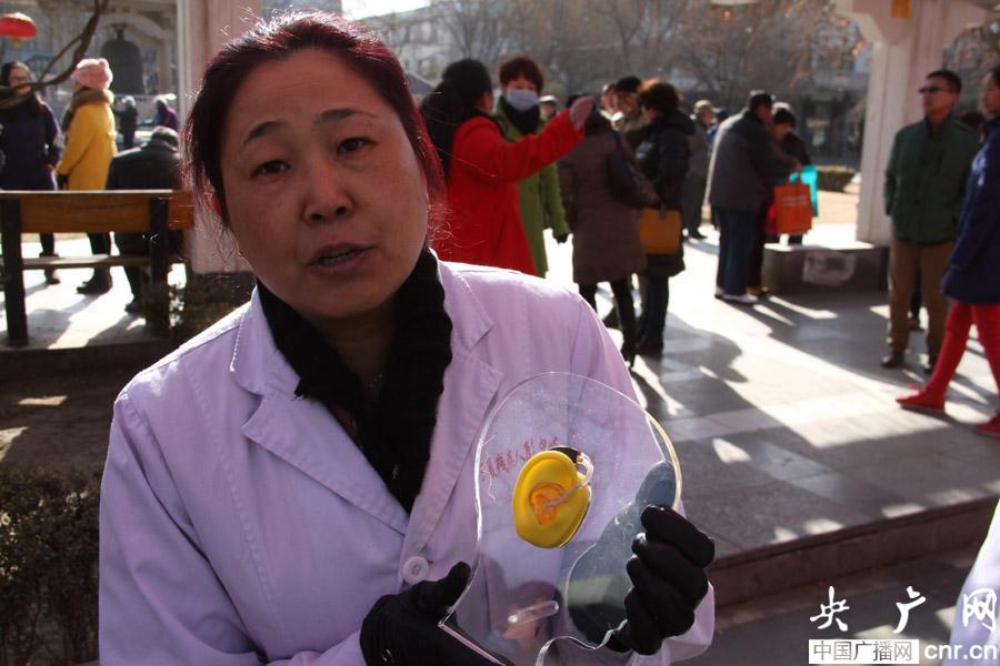 專(zhuān)業(yè)醫(yī)護(hù)人員介紹助聽(tīng)器(央廣網(wǎng)記者 廉軍 攝)