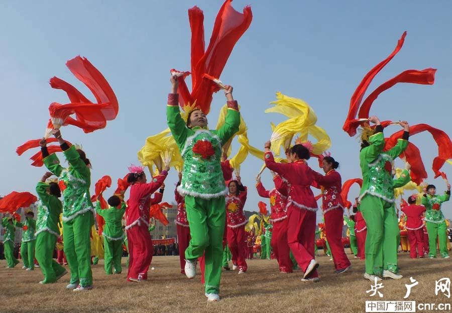 震天的鑼鼓敲起來,歡快的秧歌扭起來。在奇臺(tái)縣體育場(chǎng),來自全縣15個(gè)鄉(xiāng)鎮(zhèn)社火團(tuán)們身著節(jié)日的盛裝,帶著飽滿的熱情,為群眾帶來精彩的表演。在鏗鏘的鼓點(diǎn)聲中,奇臺(tái)鎮(zhèn)秧歌隊(duì)鑼鼓喧天,彩練飛舞。碧流河鄉(xiāng)社火隊(duì)巨龍飛躍,醒獅翻騰,向觀眾頻頻致意,表達(dá)美好祝愿!