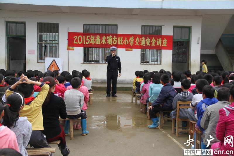 圖為廣西桂平交警到該市南木鎮(zhèn)古旺小學(xué)開展交通安全講座(央廣網(wǎng)發(fā) 通訊員攝)