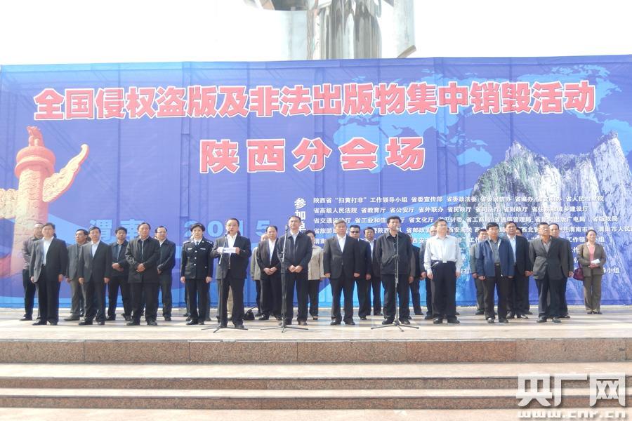 2015年全國侵權(quán)盜版及非法出版物集中銷毀活動陜西分會場活動在渭南市中心廣場舉行。(央廣網(wǎng)記者 溫超 攝)