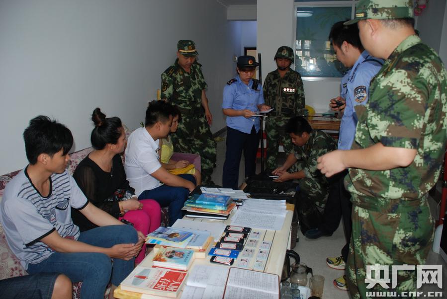 打傳聯(lián)合執(zhí)法隊(duì)伍正在整理搜查到的證據(jù)。(央廣網(wǎng)發(fā) 陳立群 攝)