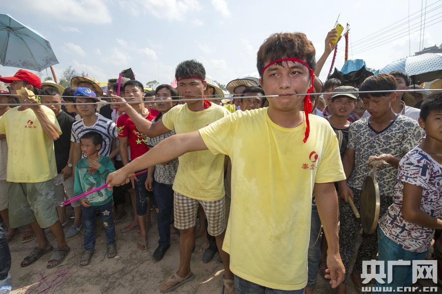 從3號(hào)上午開(kāi)始,絡(luò)繹不絕的游客開(kāi)始向定安縣文筆峰靠攏,上刀梯、過(guò)火山、穿仗、舞獅舞龍、宮廟神像巡游等眾多民俗活動(dòng)引人入勝,數(shù)萬(wàn)名游客流連忘返。